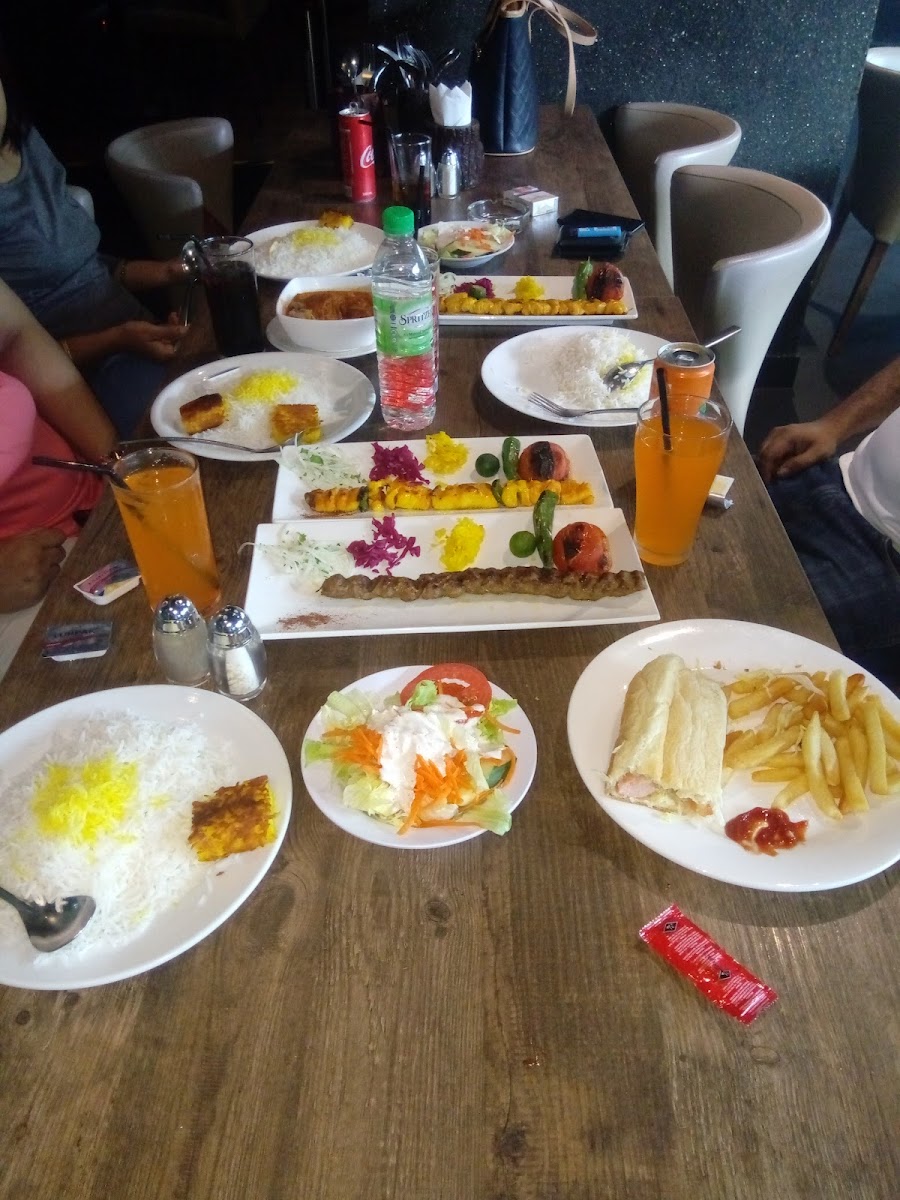 Nice place for Persian food; chicken I had was nice and tender with noice as well; very well bbq’ed Nan was not good; it came out hard and it was difficukt to eat with meat Lamb was amazing; tender, juicy, with right amount of spice Mango shake was not cold enough to enjoy Mint tea was avg but the dates that came with it were meh Some more sauces with meat would be nice It is on the first floor and you have to get in through main entrance of bldg so a bit confusing